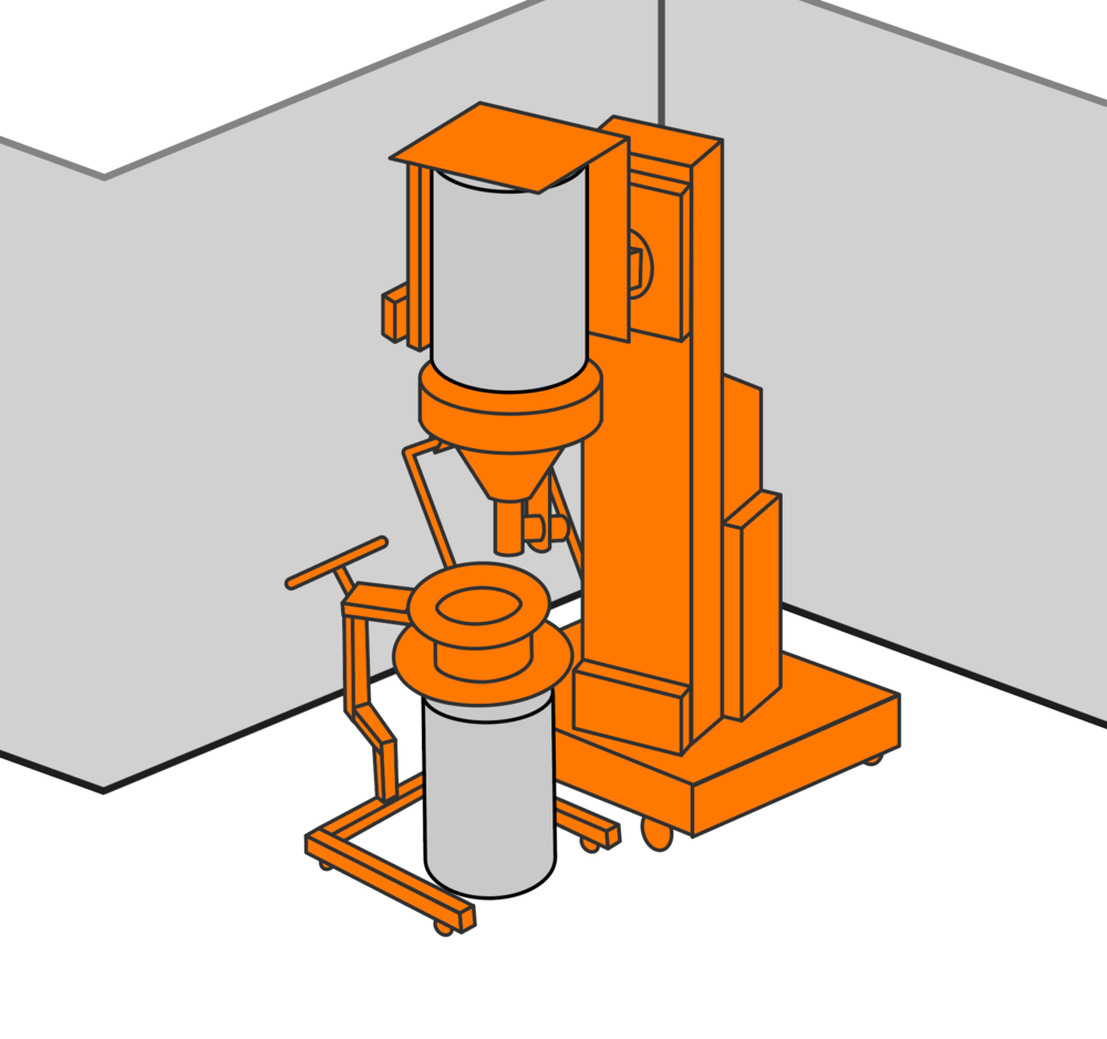 Product sizing and milling is a frequent process in the manufacturing process. This often requires drum be emptied into the infeed chute of the mill and then the powder is collected in a receiving drum. This process is labor intensive and can create high levels of airborne dust, often exceeding protection factor of operator PPE. Rheo has many options to improve both the safety and speed of this process. Our Variable Height Drum Tipper package offers a fast and easy to use transfer process that positions the drum above the mill opening. A Ventilation Sleeve can be place into the mill opening to provide local dust extraction to reduce airborne dust. This system offer access to the drum liner to assist in the flow of powders that have poor flowability. The Mobile Ventilation Sleeve can be used to capture airborne dust during the emptying process of the mill.