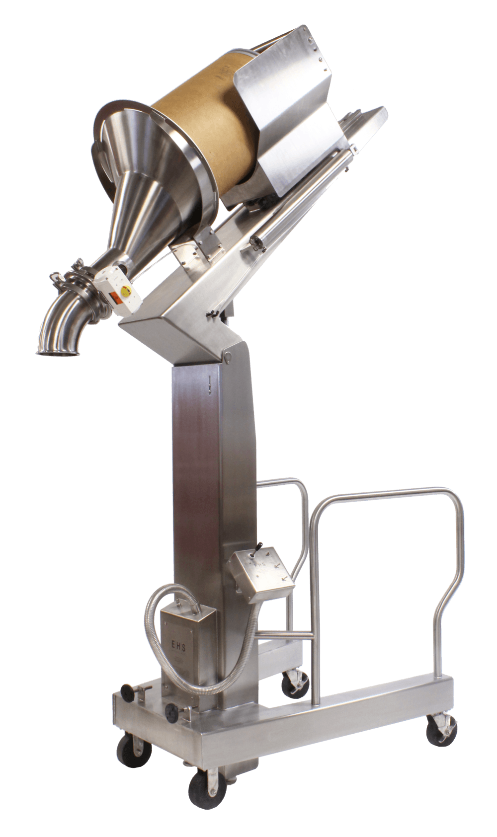 Product screening is a common practice throughout the manufacturing process. It is often a very dusty process that requires multiple steps of material handling. This process can introduce many operator risks associated with scooping powder and high exposure levels to airborne powder. A properly designed Drum Tipper with a local Ventilation Sleeve dramatically improves the operator experience and reduces airborne dust during this process. This system also reduces cleaning time and cross contamination as it prevents dust from migrating throughout the process suite.