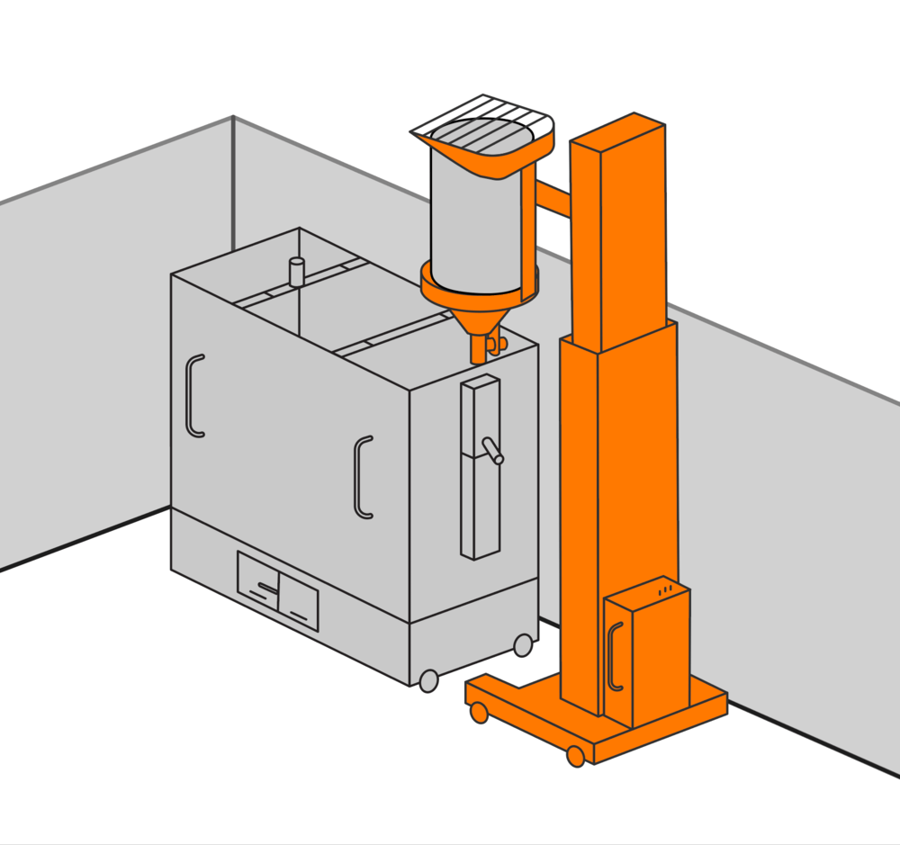 Tablet printing requires gentle handling of tablets as they are introduced into the printing machine fill hopper. Rheo offers a Variable Height Drum Tipper solution that places the drum of tablets over the fill hopper to allow a flood feed of tablets. This system is supplied with a tablet friendly control valve to control the flow of tablets into the hopper.