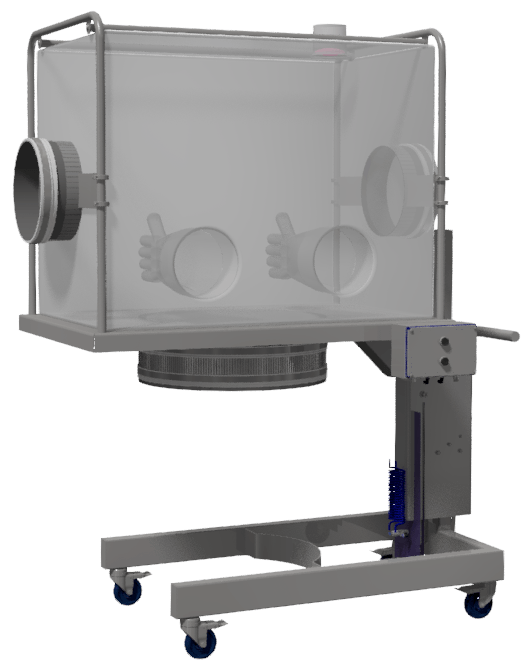 The glovebag support table can quickly move up and down, using a pneumatic cylinder, to be positioned at the optimal height for different sized drums. The o-ring and groove system on the bottom of the glovebag support table provides for a closed connection during the sampling process for any number of drums. Samples can be removed from the glovebag using a similar o-ring and groove system on the side of the glovebag.
