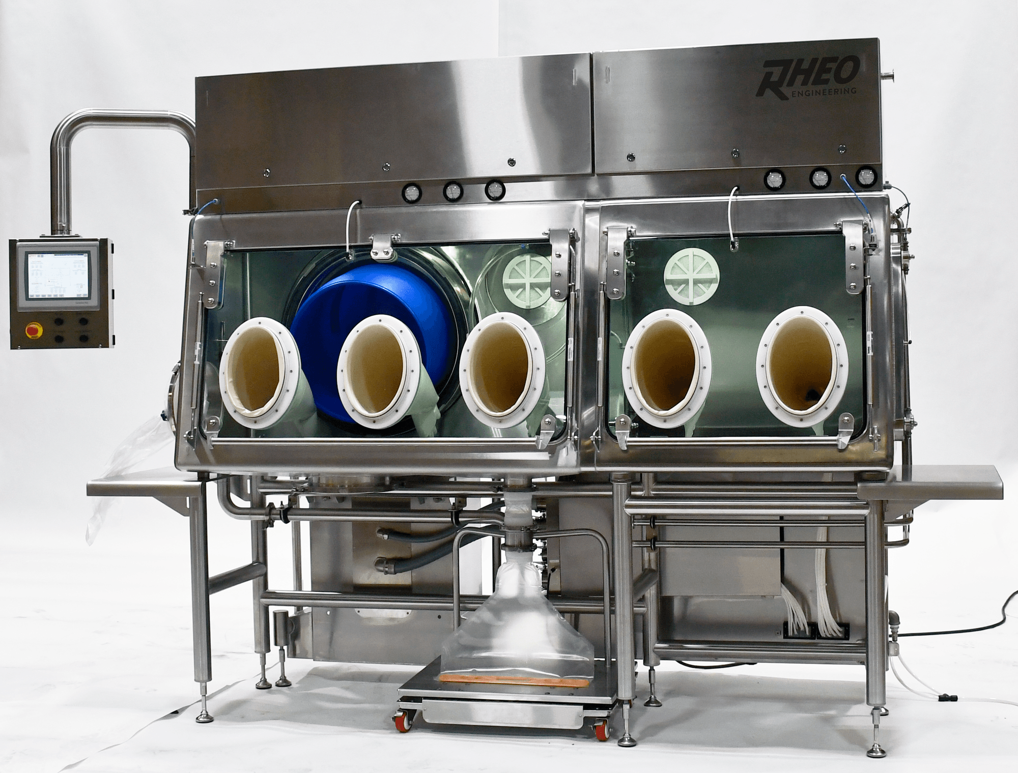 Designed for operational efficiency and safety, the isolator features a Rapid Transfer Drum Port with inflatable seals for secure module and drum connections, enabling fast and high-containment material transfers. Cleanability is enhanced through 1-inch corner radius chambers, a full clean-in-place (CIP) system with spray balls and operator wands, and flush surfaces enabled by integrated inflatable seals. The isolator features automated environmental control with real-time monitoring of pressures, airflow, oxygen concentration, and filters, and complies with 21 CFR Part 11 for electronic records and batch reporting. Customizable chamber configurations and transfer modules (e.g., weigh & dispense, vacuum hopper, chute) allow adaptation to specific workflow requirements, including hazardous location executions (e.g., Class I, Division 2).