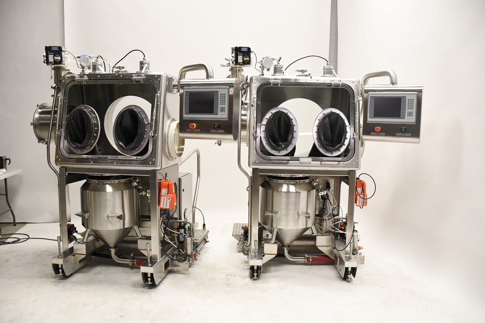 Das Vakuumfördersystem schafft ein geschlossenes Transfersystem zwischen der Materialübergabestation und dem kundenspezifischen Trichter, so dass das Material sicher übergeben werden kann, während das Containment-Level unter 1 µg/m³ gehalten wird.