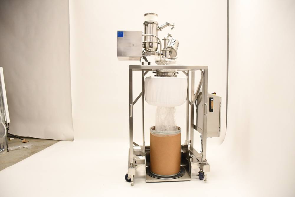 Dieses Modell der Fassabfüllstation ist mobil und verfügt über einen Kompensator zum Anschluss an obenliegende Schurren, einen Schneckenförderer, um einen genauen Materialtransfer in die Fässer innerhalb von 5 Gramm des Zielgewichts zu gewährleisten, und eine kontinuierliche Auskleidungskartusche, um die Sicherheit durch zahlreiche Fasswechsel zu gewährleisten. Ein integrierter manueller Drehtisch ermöglicht es, die Trommelauskleidung zuzudrehen, so dass der Bediener die Auskleidung einfach schneiden und quetschen kann. Diese Trommelfüllstation und der Etikettendrucker wurden beide für den Einsatz in einer Umgebung der Klasse 1 Division II und Klasse 2 Division II entwickelt.