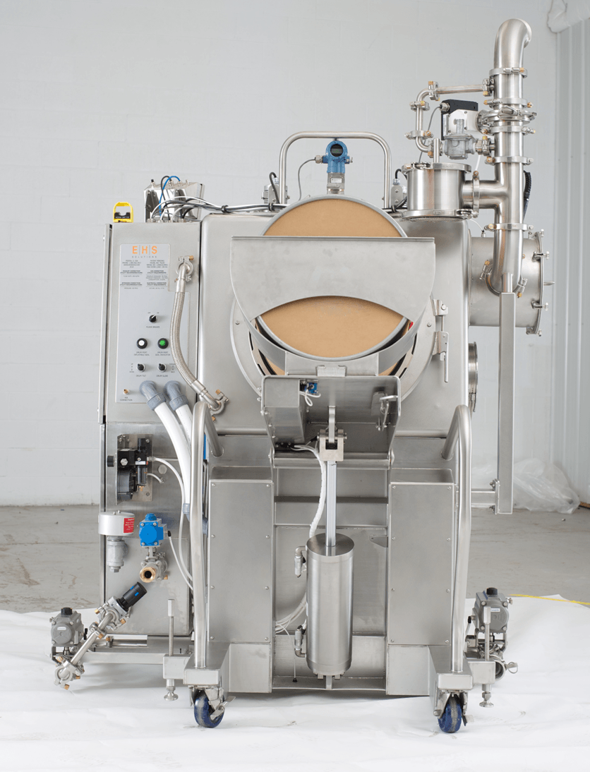 Rheo entwarf, baute und testete das MTS mit einer automatisierten Steuerungsumgebung, um eine hohe Eindämmung und niedrige Sauerstoffkonzentration zu erreichen. Der integrierte Fasskipper des Systems und das Andocken der aufblasbaren Dichtung ermöglichten einen effizienten Fasswechselprozess. Das HPAPI wird vollständig aus dem Fass entleert und in den Vakuumtrichter überführt und in den Reaktor befördert, wobei der Reaktor als Vakuumquelle Unterdruck erzeugt, wodurch ein Pulverbehälter überflüssig wird.