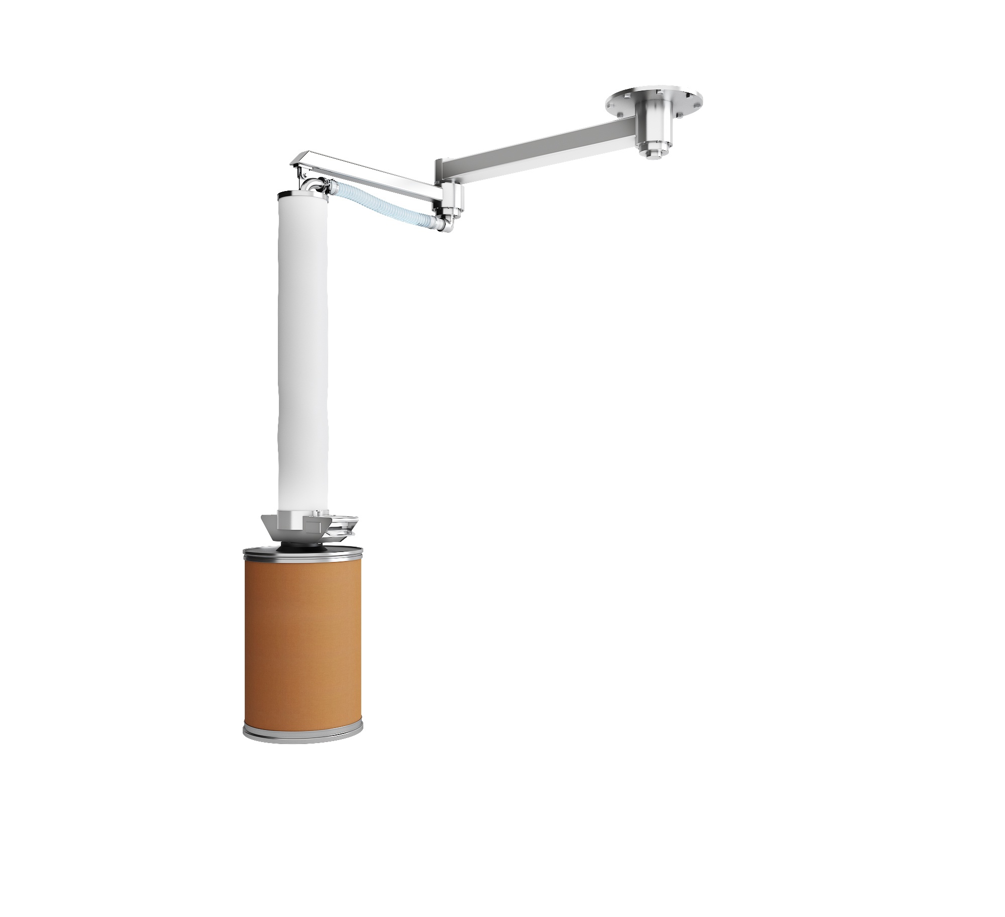 The Rheo Vacuum Lift is the simplest and most effective material handling solution for manipulating drums effortlessly in three dimensional space. The drum lid suction head is able to bond securely to drum lids while allowing ease of detachment when the operator is ready to pick up the next load. The ceiling-mounted articulating mast frees up valuable floorspace while providing a highly maneuverable mounting system for the lifter. Running only on the power of vacuum, the lifter is designed to be safe to use in harsh environments and requires little to no maintenance.
