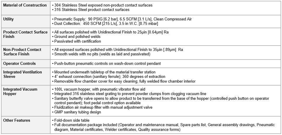 Tabletop for Unloading Bag Stock into Vacuum Hopper