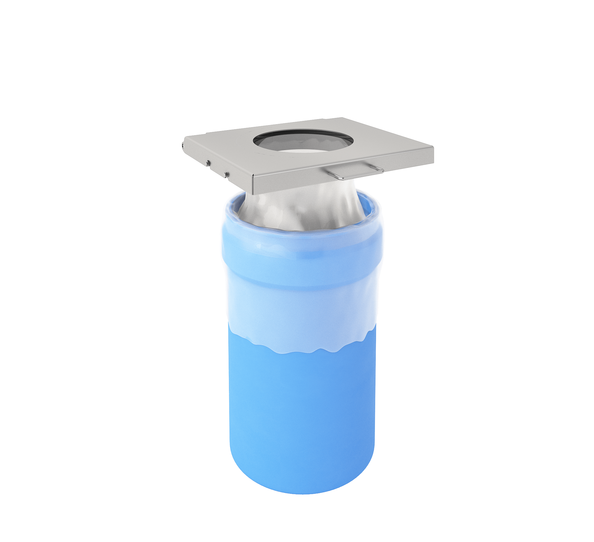 a liner is attached to be used to bag-out drum liners, zip ties, or other trash; can also be used to bag-in cleaning items or other materials.
